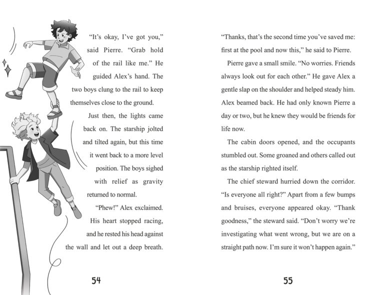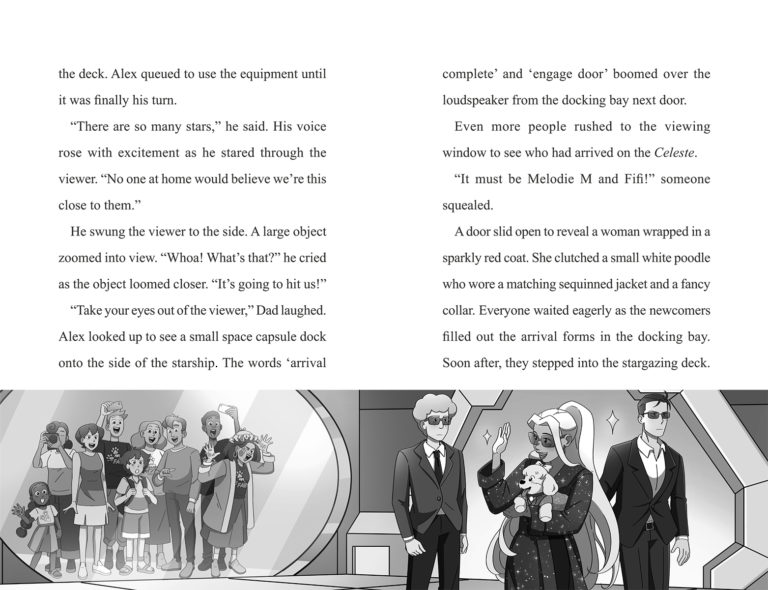 Alex has won tickets to go on a starship cruise and see Melodie M’s concert on Jupiter’s moon, Ganymede. But during the trip, expensive jewellery goes missing, and before long, so does Melodie M’s beloved performing pooch, Fifi! Will Alex, and his new friend, Pierre, be able to uncover the truth before it’s too late?